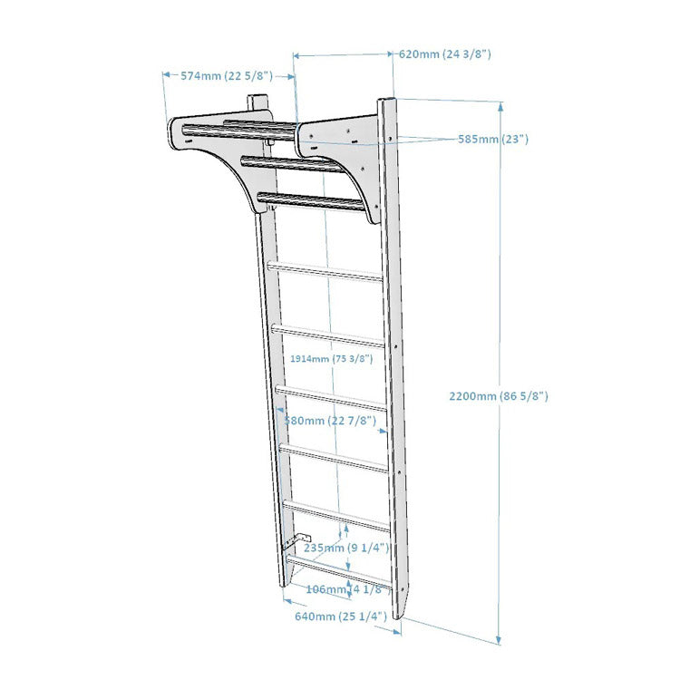 Designed for home use, it supports users of all ages and fitness levels, with a maximum load of 120 kg / 265 lb. Its solid construction makes it suitable for shared family use. The ladder requires minimal space, with an installation area of 0.5 m² / 5.38 ft².
